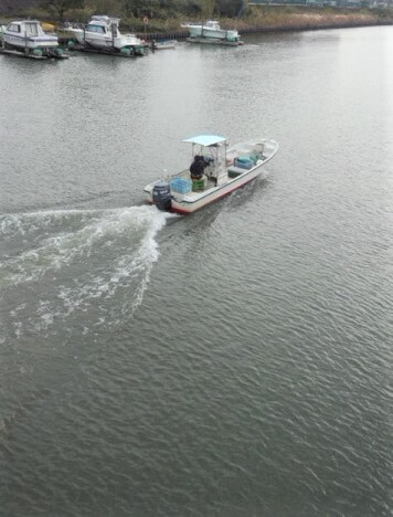 プーさん店長さんとりきちゃん、ぎんちゃんのお散歩にはいい季節のようですよ♪お散歩道にある川を船が上っていく様子が届きました。