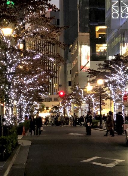 〝きもの白〟の目の前の松屋通りのイルミネーションが始まりました!今年もライトを木に巻いている作業姿を見ることはなく、今年も本日からキラキラ開始しました。クリスマスモードに徐々に入ってきている銀座にお出かけくださいね♪