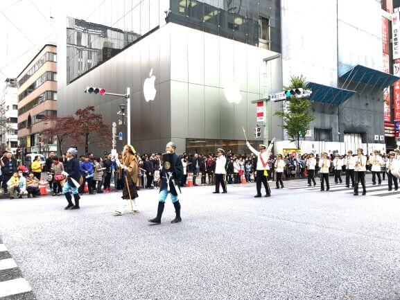 お店の窓を開けていると、賑やかな音楽が聞こえてきて何かしら?とプーさん店長さんとお外を見ると「中央通りを音楽隊がパレードしてる!!」と言うことで、ちょっと見学へ。