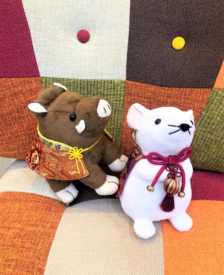 コチラのブログでも度々ご紹介している龍村美術の干支マスコットですが、来年の干支のねずみさんがお店に到着しました。まずは一人でポーズをとって記念撮影です♪