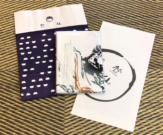 現下の災い邪気を払う意味を込めて、河鍋暁斎作の鬼を蹴りあげる鐘馗を染上げた手拭いを