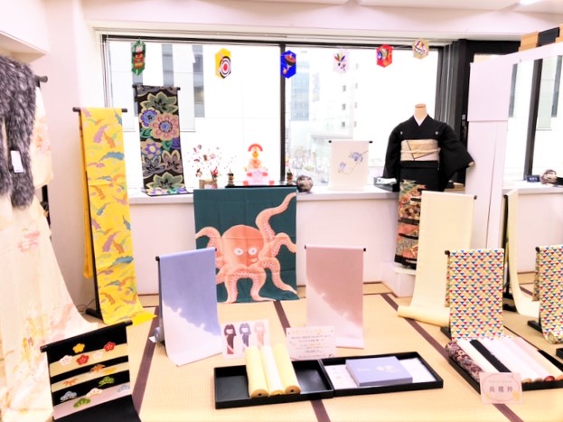 新年らしくパトには黒留袖を着せてみましたよ。そして、入り口にはお洒落なタペストリーをかけました。