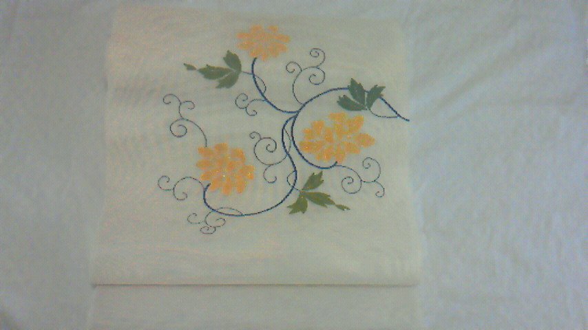 以前のブログで申し上げたように、紗は網戸のような雰囲気の透け感があります。そこに唐草を織り込んでいます。写真ではお花がかなり黄色の強い金色に写っていますが、実際にはもう少し落ち着いた上品な色に仕上がっています。