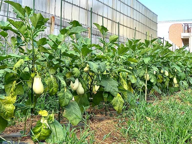 プーさん店長さんとりきちゃん、ぎんちゃんは、雨でも、晴れでもお散歩です♪今日届いた写真は『白なす』です。グリーンの葉の中にぷっくり可愛らしいフォルムの白なす君達がたくさんなっています。