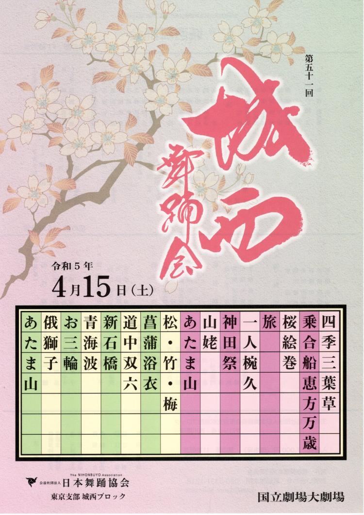 4月15日(土) 国立大劇場で『城西舞踊会』が行われます。