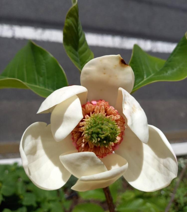 暑さとの戦いが始まってきたプーさん店長さんとりきちゃんぎんちゃんのお散歩から今日届いた写真は『泰山木』です。真っ白な花弁とおしべめしべの部分?とのコントラストが印象的です。