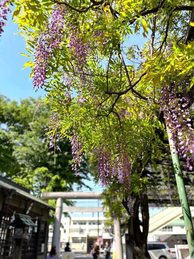 今年は暖かい?暑い?日が多くてお花さん達は例年より早く開花しています。藤が綺麗な神社に行ってパチリ♪してきました。でも、散り始めていて少し残念・・・。
