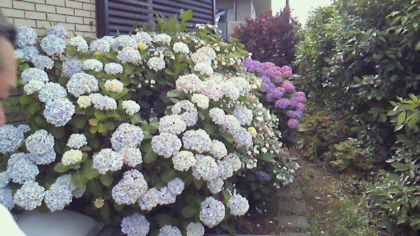 そして、一般的な紫陽花も、こんなにたくさんです!!ちょっと隠れちゃっていますが、もっと濃い青や紫などいろんな色の紫陽花が咲いていました。
