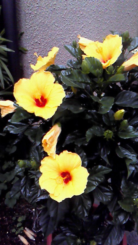 南国のイメージのある鮮やかなこのお花を見ると夏な気分になりませんか?赤と黄色の二色のハイビスカスがたくさんさいていました。お客様におうかがいしたのですが、ハイビスカスって咲いたら一日でしぼんでしまうそうで、帰り際に撮らせて頂いたので、到着した時より少しお花の数が減っちゃいましたが、やっぱり綺麗です!!