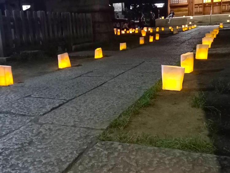 今日はプーさん店長さんのお家の近くにある高砂天祖神社の写真が届きました。昨日は迎え火という事で、参道から境内に小さな灯篭が並んで幻想的な雰囲気です♪