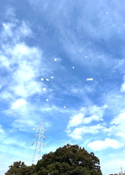 白い風船がたくさん飛ばされ、ぱちんと割ると白い粉が舞うので子供たちがぱちん!ぱちん!と楽しんでいたそうです。子供たちの手から逃れた風船はフワフアと青空へ。