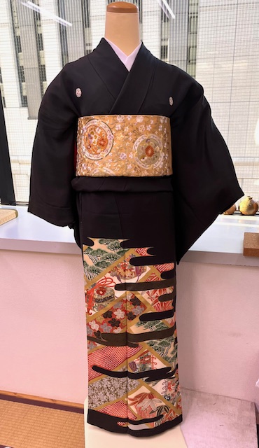 今日はまだクリスマスイブですが、クレオパトラ(通称パト)が新年に向けて留袖にお召替えしましたよ。アンティークの留袖なので、最近の物とは少し雰囲気が違います。腰の位置まで柄ったっぷりで雰囲気ある一枚です。