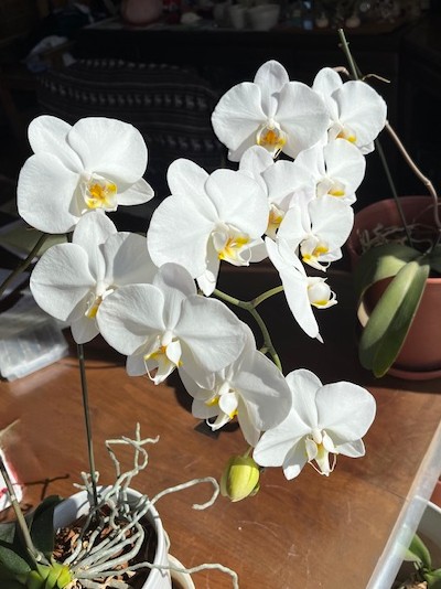 お店の開店の際に頂いた胡蝶蘭が今年も1輪咲きました!!と昨年12月にお知らせしましたが、その胡蝶蘭が満開となりました。