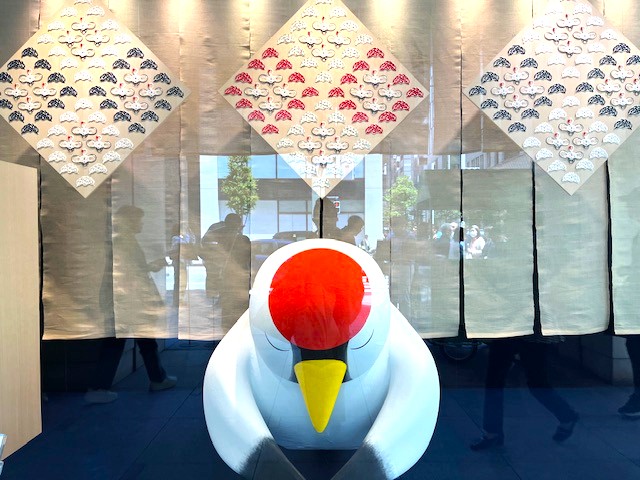 ショーウインドーで、鶴くんがご挨拶していたのでパチリしきました。