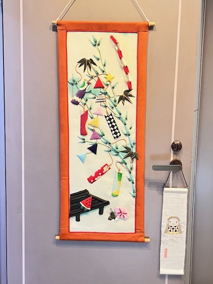 お店の入口のタペストリーを『七夕』に交換しました。