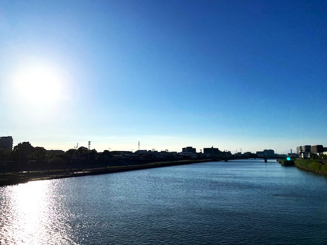 今日プーさん店長さんのお散歩から届いた写真は『空と河』です。夕焼けにはまだ少し早いけど太陽がすこし傾いていてきていて、空と河の青がとてもきれいです♪