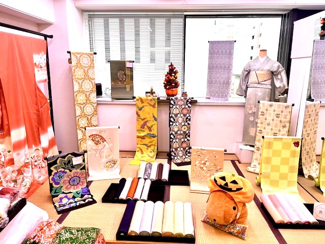 店内は秋冬のきものや帯などが並びました。