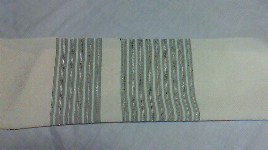 一般的な六通柄の帯だと、前柄は、横縞になるのですが、あえて、ここは、縦縞に。それも、縞を七三に分けて無地の部分をはさみました。