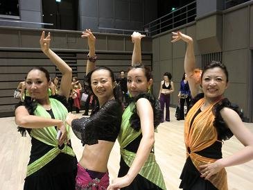 他にもズンバ仲間がチームデモにエントリーしていて、終わった後にまたまたパチリです。この緑とオレンジの衣裳で踊ったみんなも、カティ先生に教えてもらっている仲間で、本当にかわいくて華やかで細かい動きまで揃っていてすごく素敵でした。