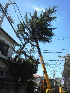 木に絡まって、電線もビローンと下がってたみたいですよ。