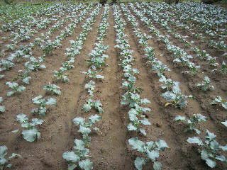 最近植えられたらしい、ブロッコリーくんとカリフラワーさんです。