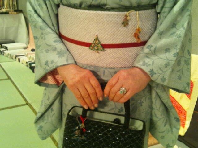 お仕事の合間に寄って頂いた方など、お洋服でお寄り頂いた方が多く、そしてブログはちょっと・・・と、言われてしまったりで、お着物姿を撮らせて頂けた方が、残念ながら一人・・・。でも、クリスマスを感じられる素敵なコーディネートだったので、アップでも撮らせて頂きました!