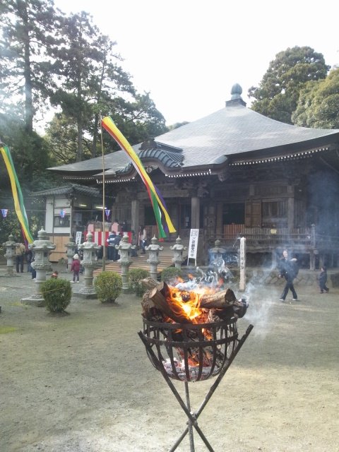 本堂は、かがり火越しにパチリです。なかなかいい雰囲気にとれた気がするんですが、如何でしょうか?