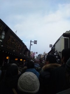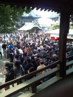 前の人の足元を蹴りながら(蹴りたくて蹴ってるわけじゃないんですよ~)ちょびちょび歩いてやっと山門が見えるところまで辿り着き、さてお札を頂くぞ!!と中に入ったらまた人の山・・・