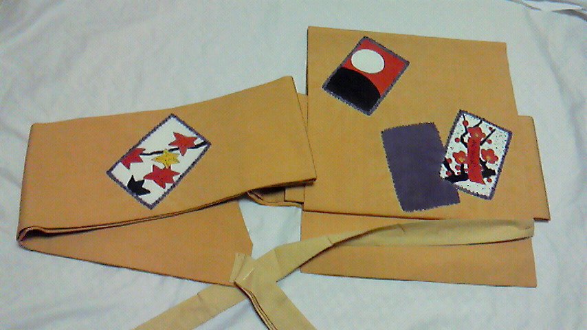 使い方としては、出来上がっているお太鼓部分に枕を入れて背負い、前部分は、ついている紐を、前に持ってきてちょうちょ結びで完成です!お太鼓と前部分がつながっているので、不自然にズレてしまうことがないので、身体に付けてしまえば、作り帯とは分からないですよ。
