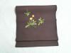 チョコレート色の塩瀬地にかわいらしくタンポポが刺繍されています。濃い地色にタンポポの黄色と葉の緑色が映えます。春になると薄い色のお着物が増えてくるので、濃い地色の帯でぐっとしめるとオシャレですね。どんな小物を使うのか考えるとワクワクしてきます。