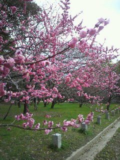 最後は、京都御所の紅梅です!!こちらも満開で美しい!!この色何とも言えないですねえ。とっても魅力的な感じがします。普段だと梅と桜が一緒に咲いていることなどないのですが、今年の寒い冬を乗りっ切ったご褒美でしょうか?お花の競演です!!