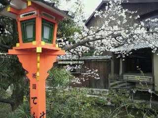 次は、満開の桜!!場所はよくわからないのですが、上七軒歌舞練場の写真と一緒に送られてきたので、その辺りかなあと思うのですが・・・。あれ?その歌舞練場の写真はどうしたの?って思いますよね。その写真は入口の幕だけだったので、桜の美しさに魅かれて、この写真をピックアップしちゃいました。