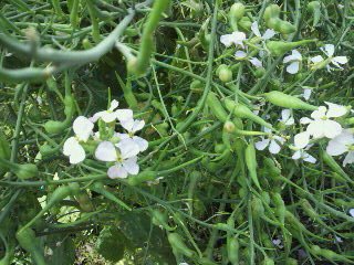 これまた、だいぶ前のブログに登場したことのある亀戸大根のお花だったんです。そして、この房の中には種が入っているそうで、種づくりの最中だという事でした。(亀戸大根を載せたブログはコチラhttp://kimono-haku.jp/promotion/1/blog_detail.html?key=entry&value=648)